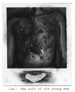 Looking at Bladh’s work one can discern influences from Yukio Mishima, Francis Bacon, Hermann Nitsch, Peter Sotos, Georges Bataille, Dennis Cooper, Dennis Nilsen, David Nebrada, even St Sebastian. They’re all there, all openly on display, yet remarkably Bladh’s work progresses past these influences and finds its very own standing alongside them. There are not many who can transform a Bacon painting into their own, who can litter their work with the quotes of writers and philosophers and have those words seem more their own than their owners’. Martin Bladh can, and does. His arrangement of collages, his cut ups and pasting, his personal markings, all lend a uniqueness to what he does that is unmistakable: everything he produces signed with a signature that cannot be scrawled.